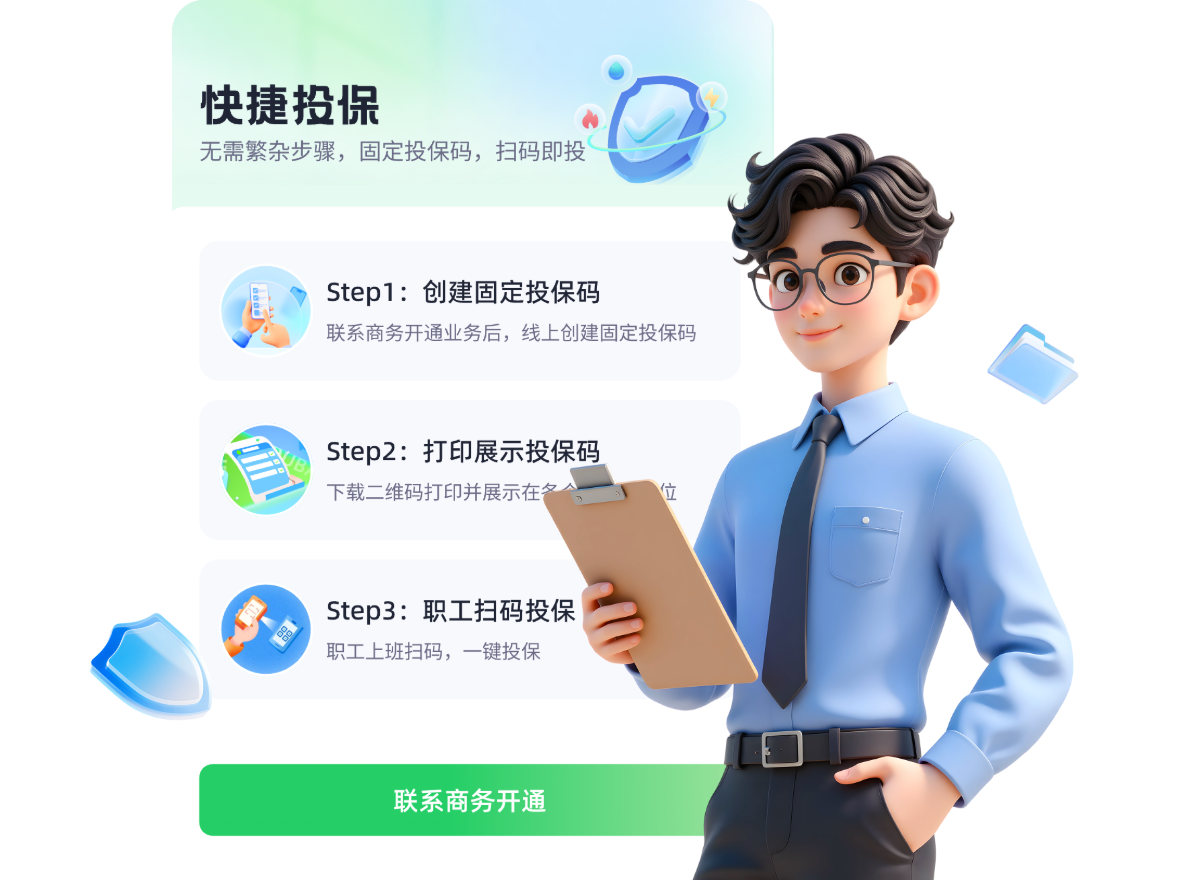 长期工、日结工多种投保方式,当日投保,即时生效,随时随地手机/电脑都可以投保、加保 、减保,100人投保只需1分钟。