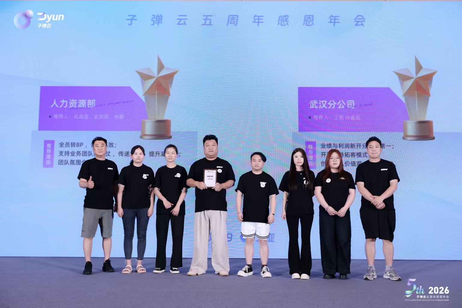时光为证,坚守致远。当现场大屏幕缓缓播放老员工照片,时光的温情在会场流淌。从初入职场的青涩新人,到独当一面的业务骨干,一张张照片定格的不仅是容颜的变化,更是每一位老员工与蓝豚互动携手同行的珍贵足迹。本次年会特别设置陈年奖表彰环节,“三年奖”“五年奖”员工依次登台,从颁奖嘉宾手中接过金元宝与荣誉证书。这份认可,让个人成长与企业发展的双向成就变得触手可及。此外,优秀个人奖、优秀团队奖、卓越区域奖、优秀标杆奖、领航合伙人等多个奖项也相继揭晓。每一个奖项的背后,都是“子弹人”对工作的热爱、对岗位的坚守,更是团队凝心聚力、奋勇争先的生动写照。