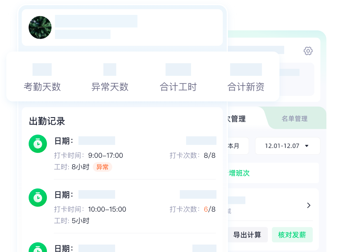 一键考勤打卡 轻量快速记工时 实时考勤 自动算薪 一键发放