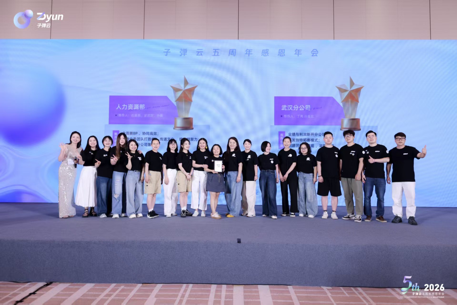 时光为证,坚守致远。当现场大屏幕缓缓播放老员工照片,时光的温情在会场流淌。从初入职场的青涩新人,到独当一面的业务骨干,一张张照片定格的不仅是容颜的变化,更是每一位老员工与蓝豚互动携手同行的珍贵足迹。本次年会特别设置陈年奖表彰环节,“三年奖”“五年奖”员工依次登台,从颁奖嘉宾手中接过金元宝与荣誉证书。这份认可,让个人成长与企业发展的双向成就变得触手可及。此外,优秀个人奖、优秀团队奖、卓越区域奖、优秀标杆奖、领航合伙人等多个奖项也相继揭晓。每一个奖项的背后,都是“子弹人”对工作的热爱、对岗位的坚守,更是团队凝心聚力、奋勇争先的生动写照。
