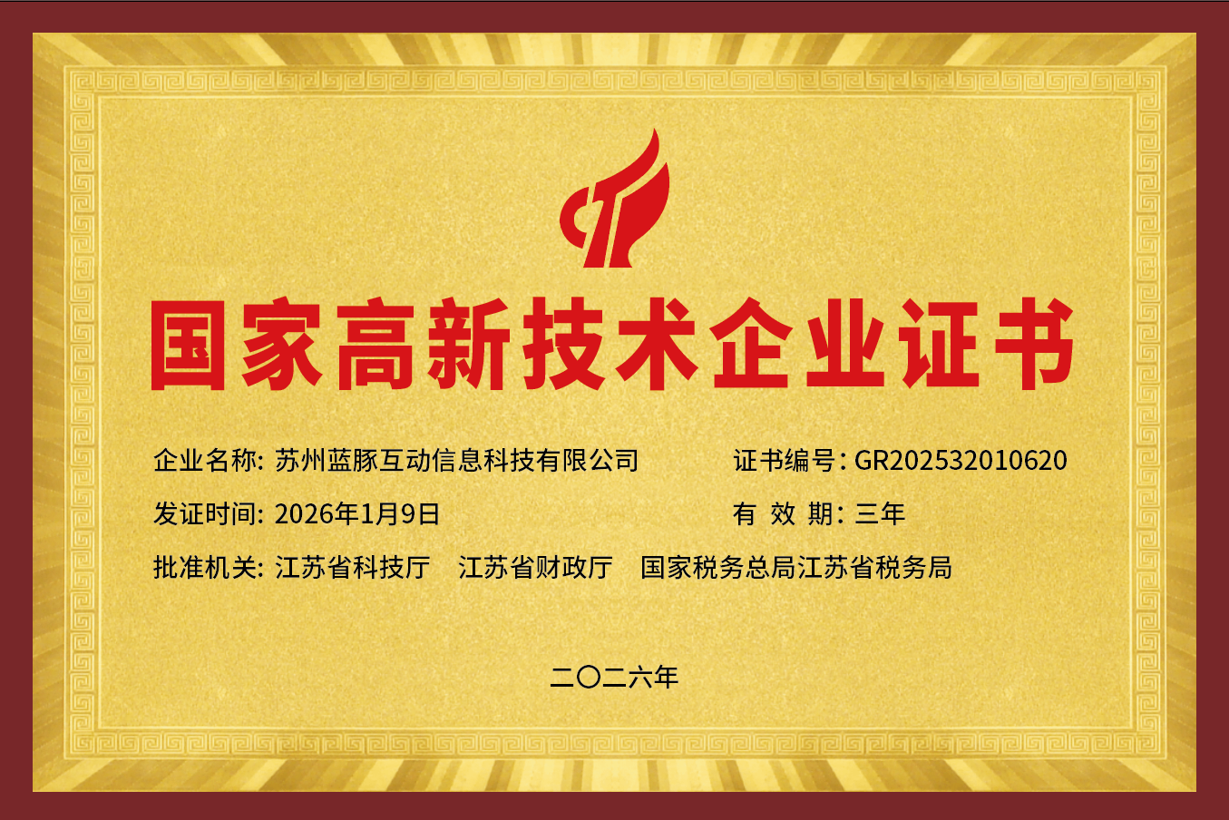 新年传喜讯,蓝豚互动获高企认证,央媒报道!