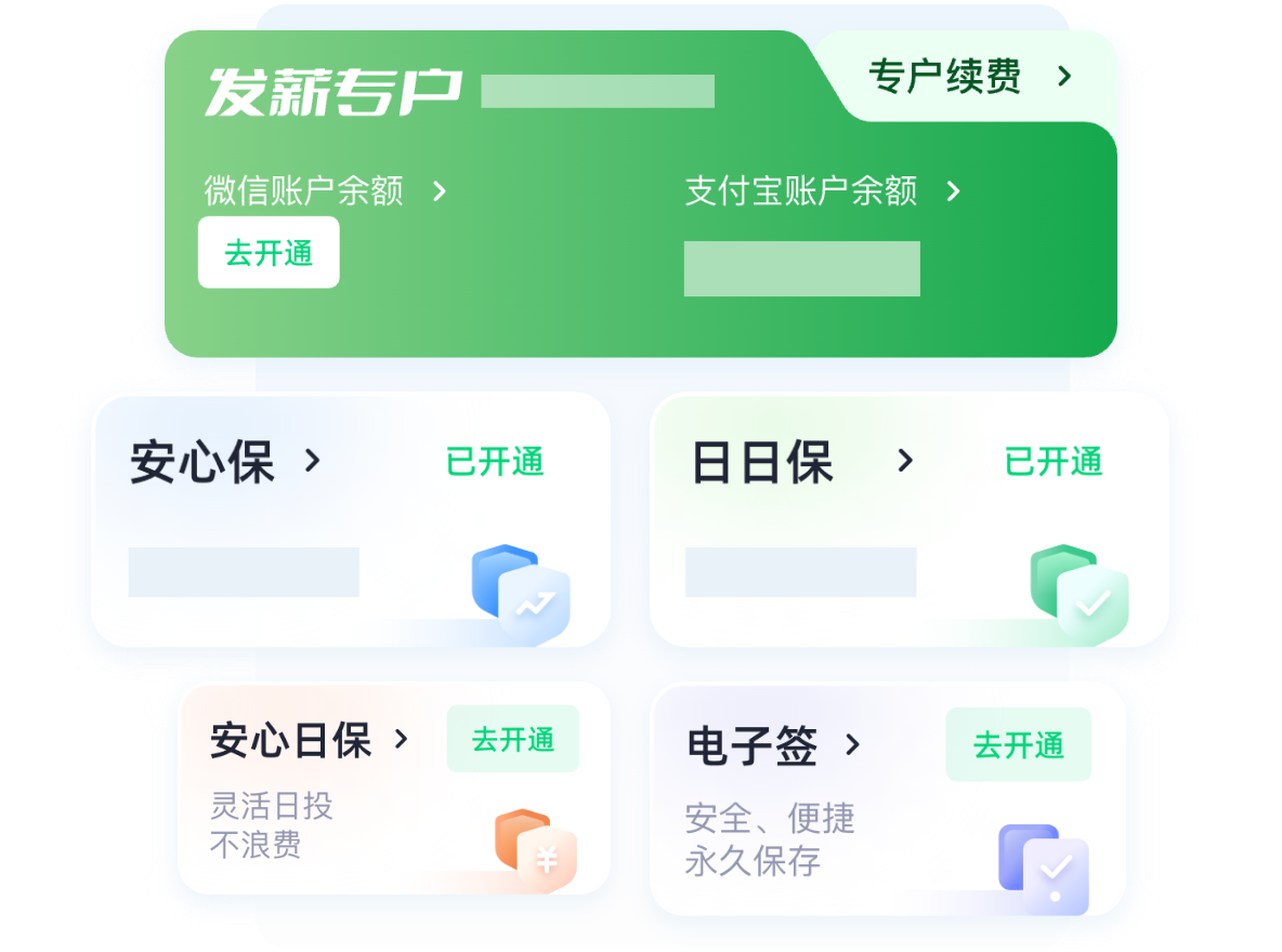 无需收集员工银行卡信息,大幅提升企业运营效率,工资可直接提现至银行卡、微信、支付宝等账户。