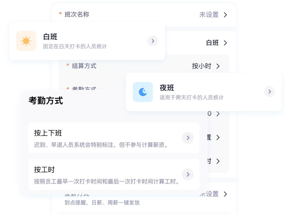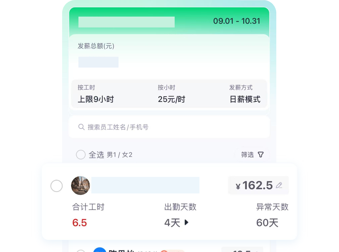 一键考勤打卡 轻量快速记工时 实时考勤 自动算薪 一键发放
